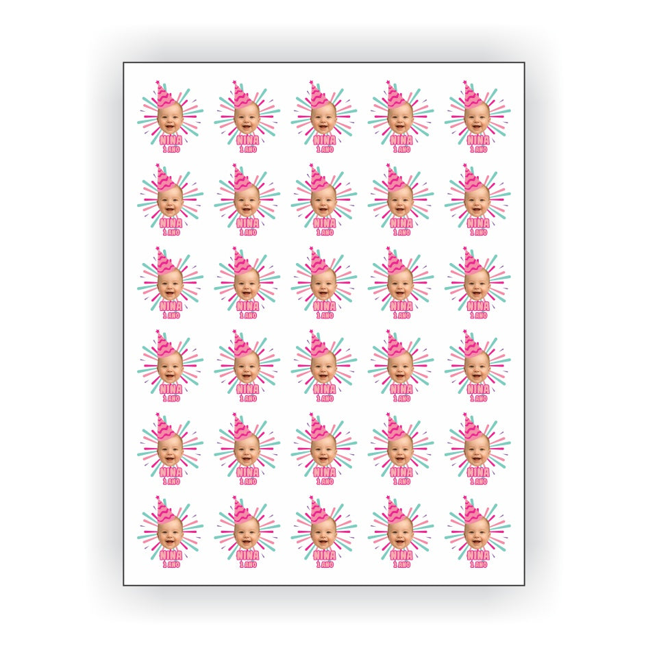 Envie a foto somente do rosto do(a) aniversariante com o fundo branco ou transparente.